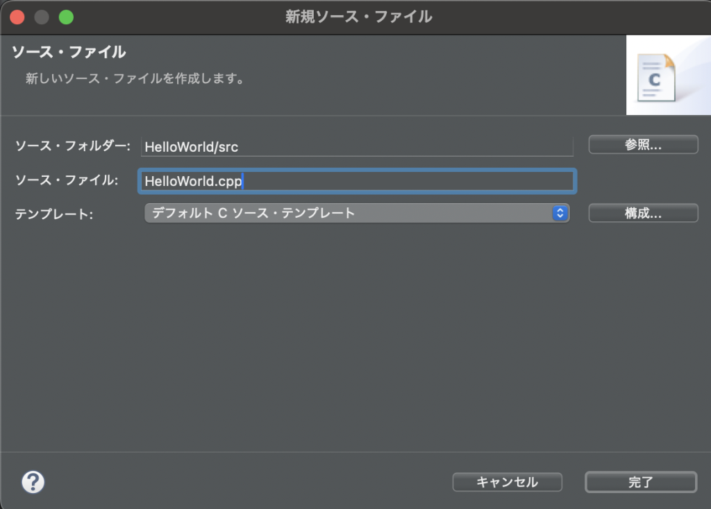 ※ここではHelloWorld.cppとしています。