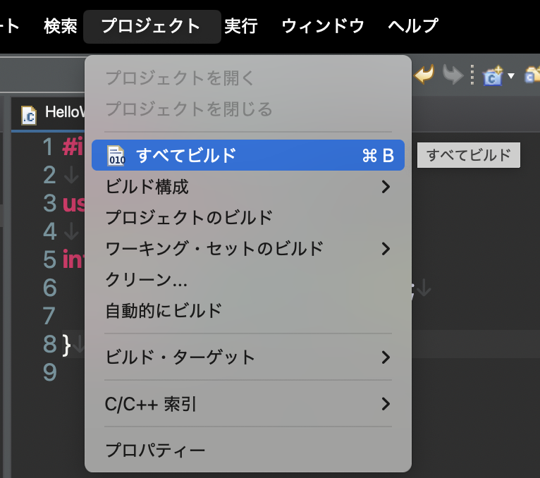 ③ メニューバーの「プロジェクト」から「すべてビルド」を選択しビルドします。